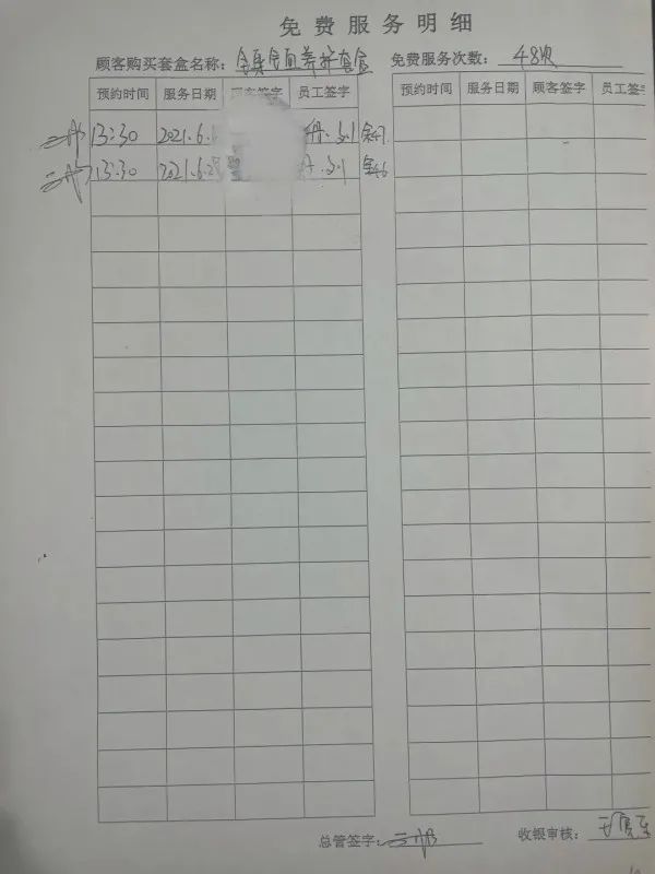像邓女士这样的遭遇并非孤例。文峰门店往往并不主动提供充值凭证和消费凭证,消费者需要每次消费前告知门店自己的身份信息,结束后在店内“签单”,难以获知当下余额和消费明细,最终往往是一笔“糊涂账”。