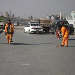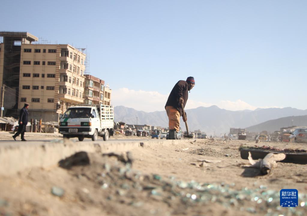 12月14日,市政人员在阿富汗首都喀布尔清理爆炸现场。新华社发(塞夫拉赫曼·萨菲摄)