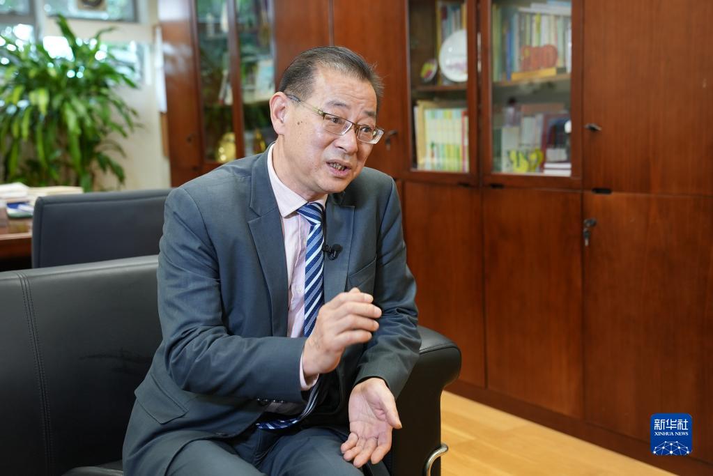 12月14日,澳门城市大学协理副校长叶桂平接受采访。新华社发(梁建华 摄)