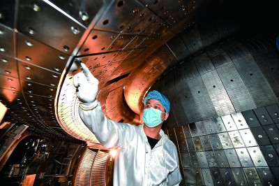 在中科院合肥物质科学研究院,科研人员对全超导托卡马克核聚变实验装置(EAST)进行升级改造(4月28日摄)。新华社发