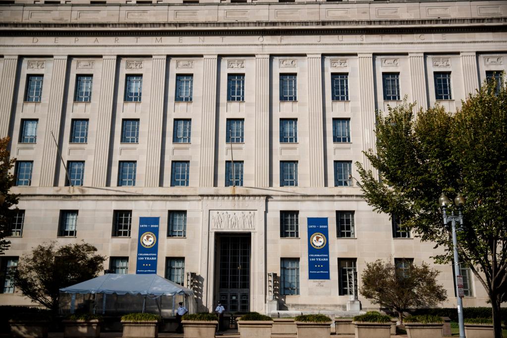 2020年10月20日在美国华盛顿拍摄的美国司法部大楼。(新华社发,沈霆摄)