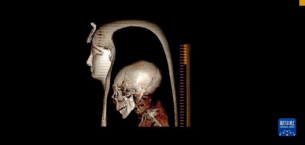 这张数字化影像显示的是古埃及法老阿蒙霍特普一世的头骨。新华社发(埃及旅游和文物部供图)