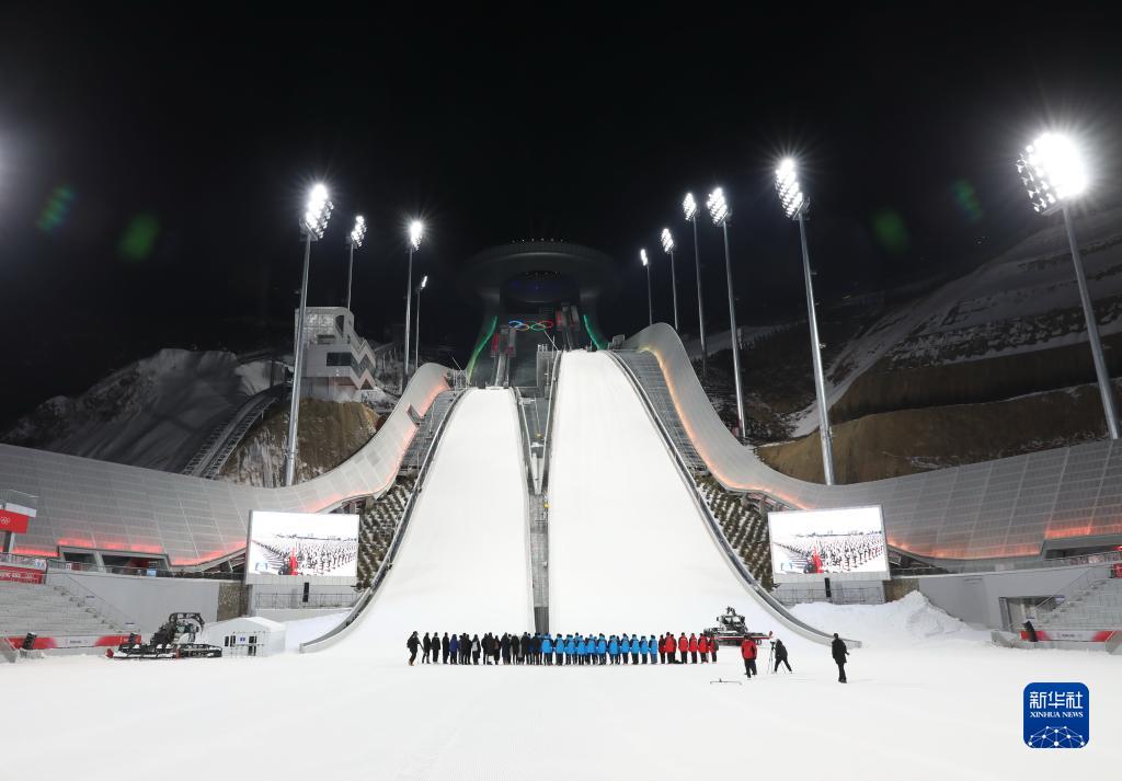 2021年12月31日,工作人员在张家口赛区国家跳台滑雪中心工作。新华社记者 杨世尧 摄