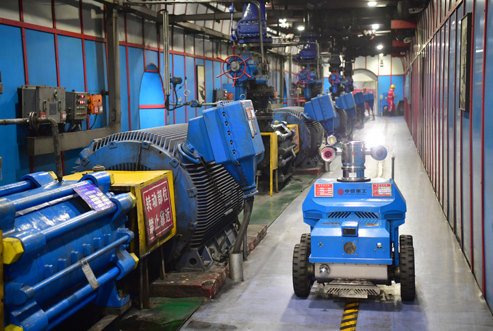曹家滩智慧矿山井下的中央水泵房智能巡检机器人在巡检。 新华社记者邵瑞 摄