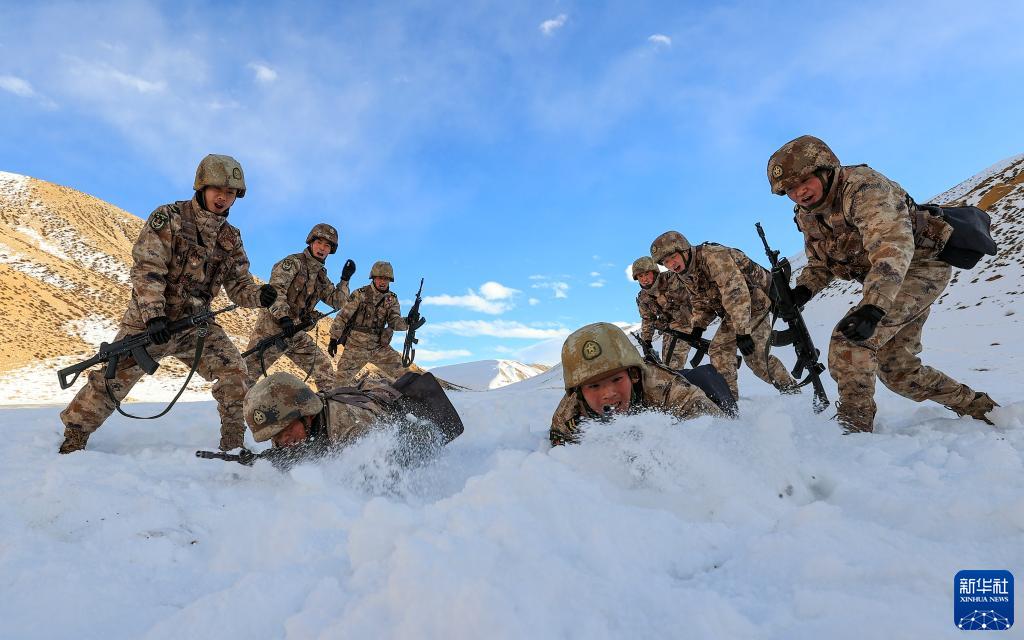 1月4日,驻守在西藏阿里高原的阿里军分区某边防团官兵在雪地进行战术比武。新华社发(刘晓东摄)