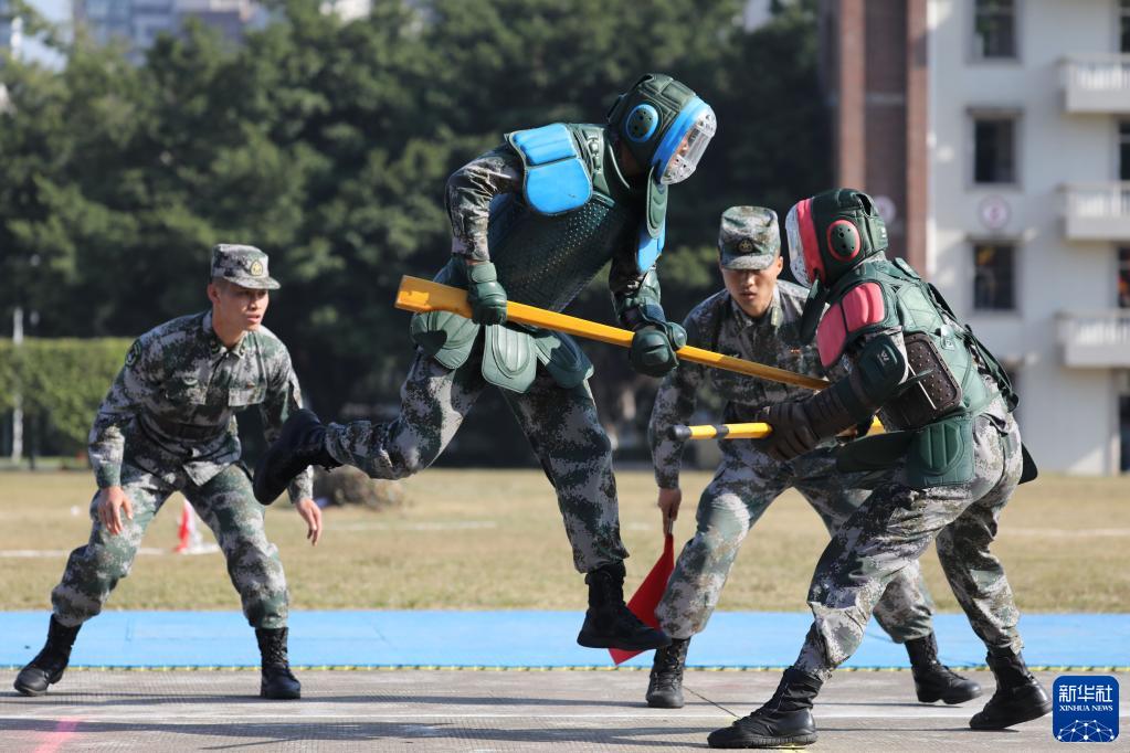 1月4日,驻澳门部队举行新年度开训,官兵们进行刺杀训练。新华社发(叶华敏摄)