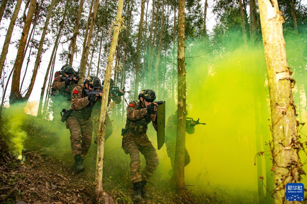 1月4日,武警海南总队三亚支队组织特战队员开展丛林地捕歼战斗演练。新华社发(周奕摄)