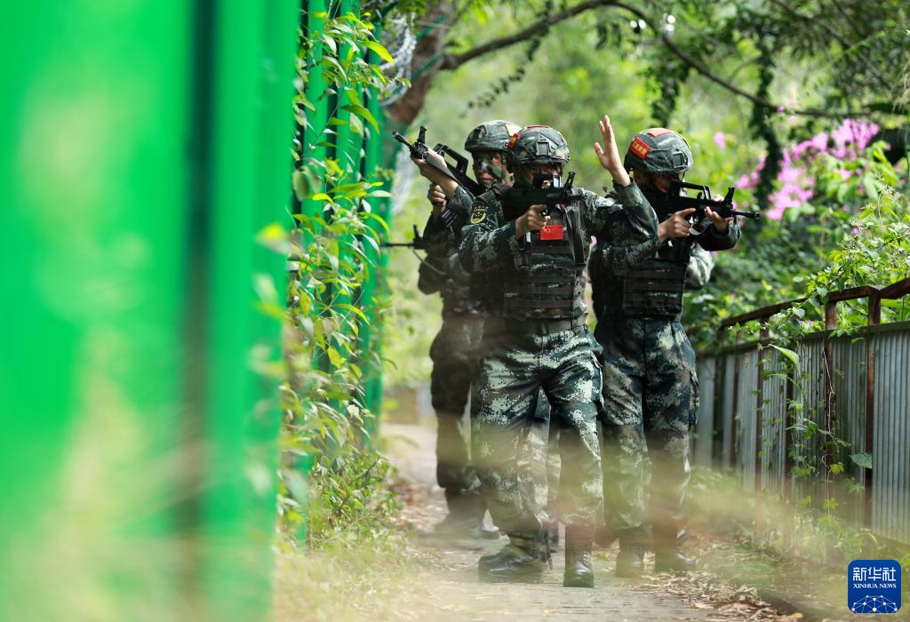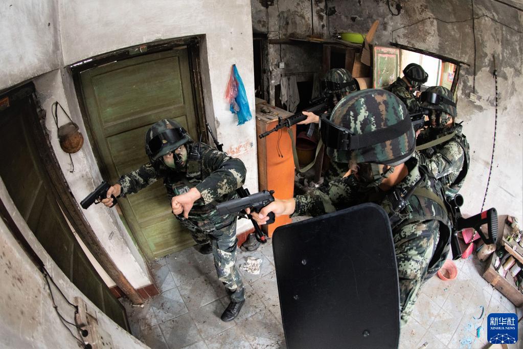 1月5日,武警广西总队北海支队官兵开展居民地反恐演练。新华社发(余海洋摄)
