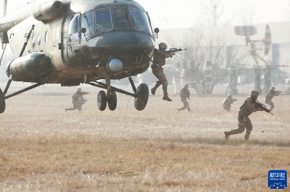 1月4日,陆军第81集团军某陆航旅组织新年开训,特战队员机降投入战斗。新华社记者 张永进 摄