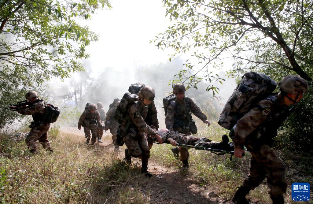 1月4日,无锡联勤保障中心第910医院将野战医疗队拉到闽南某山区,在陌生地域开展实战化卫勤训练。新华社发(巴涛摄)