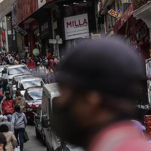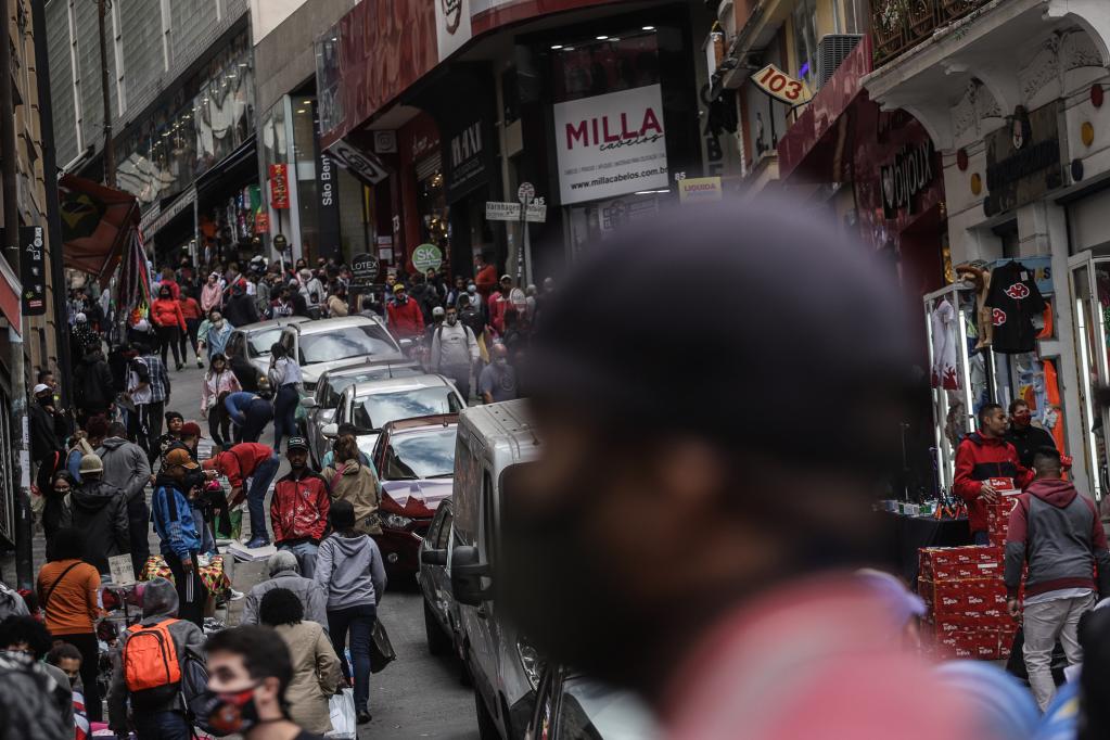 2021年8月4日,巴西圣保罗市一条商业街上人头攒动。(新华社发,拉赫尔·帕特拉索摄)
