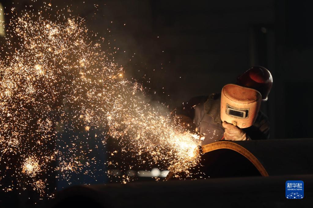 北方重工的工人在进行焊接作业(2020年2月10日摄)。新华社记者 杨青 摄