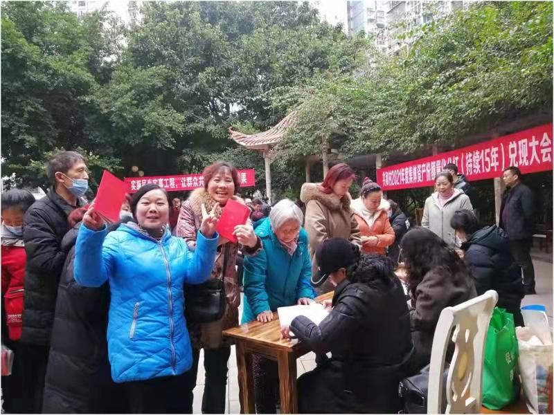 重庆市九龙坡区中梁山街道共和村集体经济组织向村民“股东”们兑现年度分红资金。(受访者供图)
