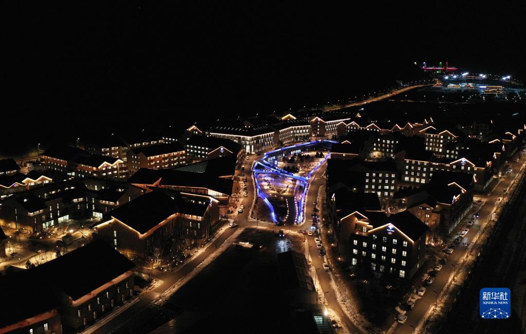这是2021年11月23日拍摄的张家口冬奥村夜景(无人机照片)。新华社记者 杨世尧 摄