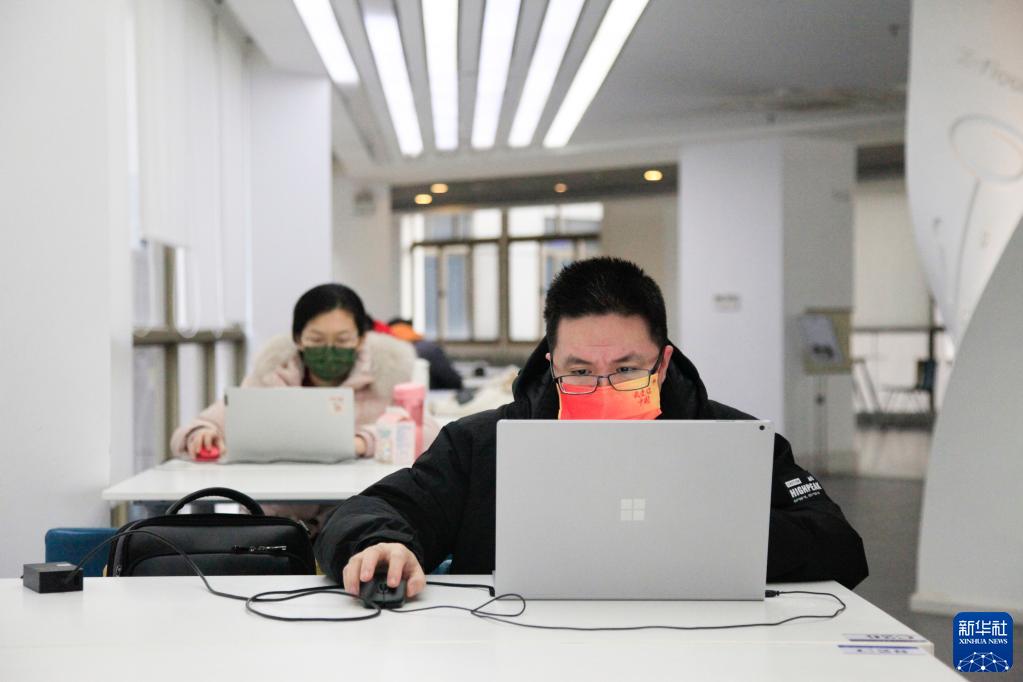 1月29日,留校学生在西安交通大学兴庆校区图书馆自习。
