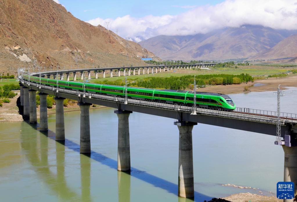试运行的复兴号列车行驶在西藏山南市桑日县境内(2021年6月8日摄)。新华社记者 普布扎西 摄