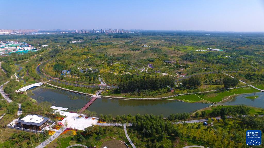 这是2020年9月30日拍摄的位于北京市通州区的城市绿心森林公园(无人机照片)。新华社发(刘宇 摄)