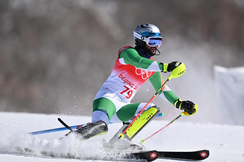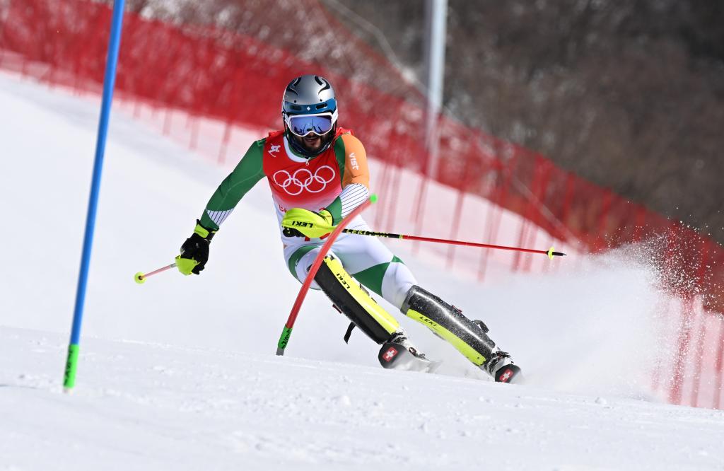 2月16日,印度选手穆罕默德·阿里夫·汗在北京冬奥会高山滑雪男子回转项目比赛中。新华社记者张晨霖摄