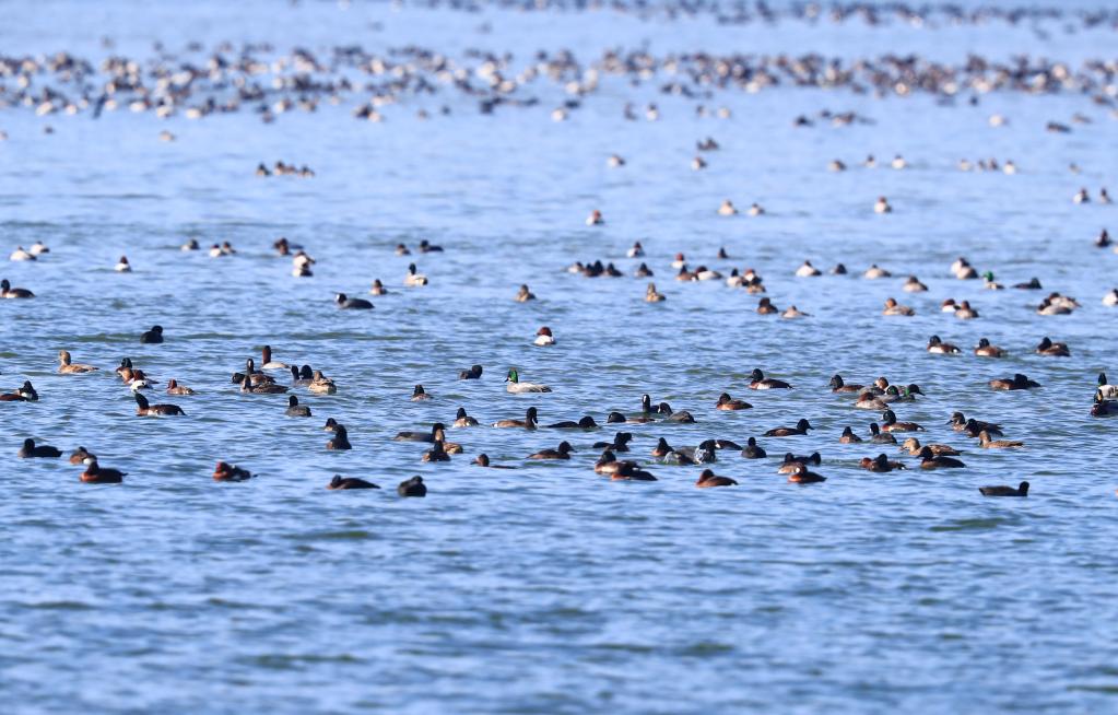 1月13日,在山东省东平湖水域,大量青头潜鸭在湖面栖息。刘兆瑞摄