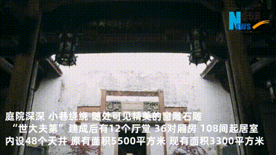 庭院深深,小巷绕绕,随处可见精美的窗雕石雕……“世大夫第”建成后有12个厅堂,36对厢房,108间起居室,内设48个天井。原有面积5500平方米,现有面积3300平方米。
