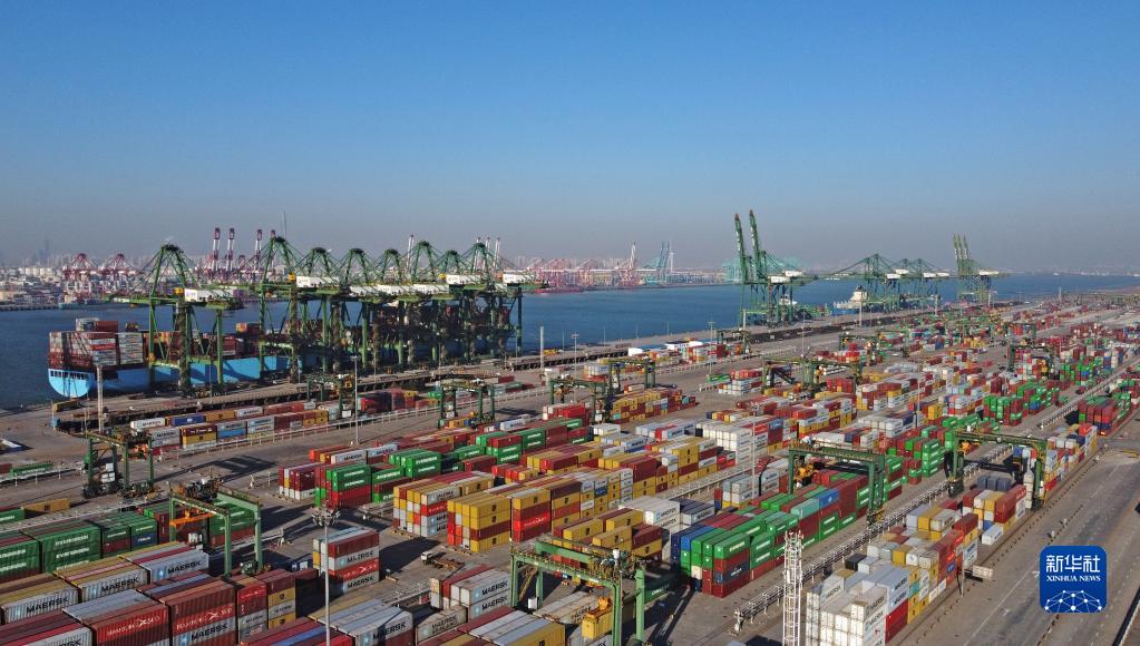这是2021年12月18日拍摄的天津港太平洋国际集装箱码头(无人机照片)。新华社记者 赵子硕 摄
