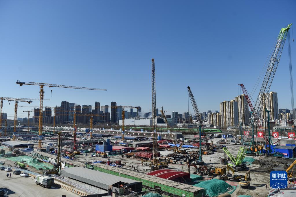这是位于北京市通州区的北京城市副中心站综合交通枢纽工程建设现场(2022年2月23日摄)。新华社记者 陈钟昊 摄