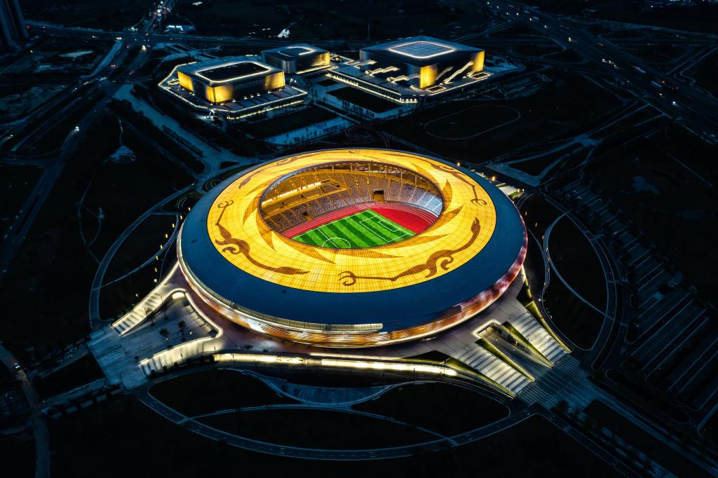 在第31届世界大学生夏季运动会的筹备中,太阳神鸟元素频繁出现,化身为成都大运会会徽、核心场馆凤凰山体育公园的标志,展现天府之国的深厚文化底蕴。主场馆东安湖体育场上方,上万块彩釉玻璃拼装出的太阳神鸟,迎接大地的仰望和天空的俯瞰。