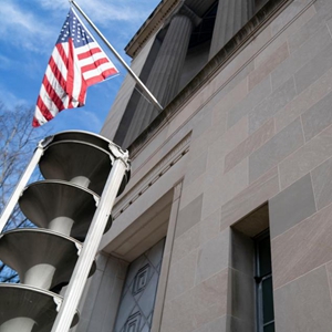 这是3月10日在美国首都华盛顿拍摄的美国司法部大楼。新华社记者 刘杰 摄