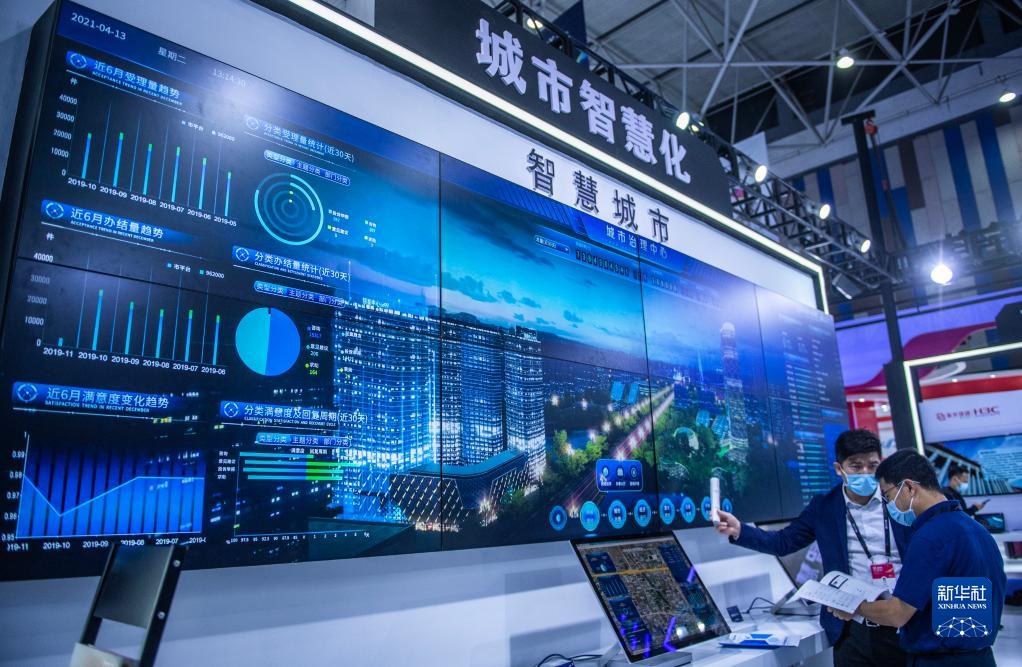 参会者在2021中国国际大数据产业博览会上了解智慧城市治理中心(2021年5月26日摄)。新华社记者 陶亮 摄