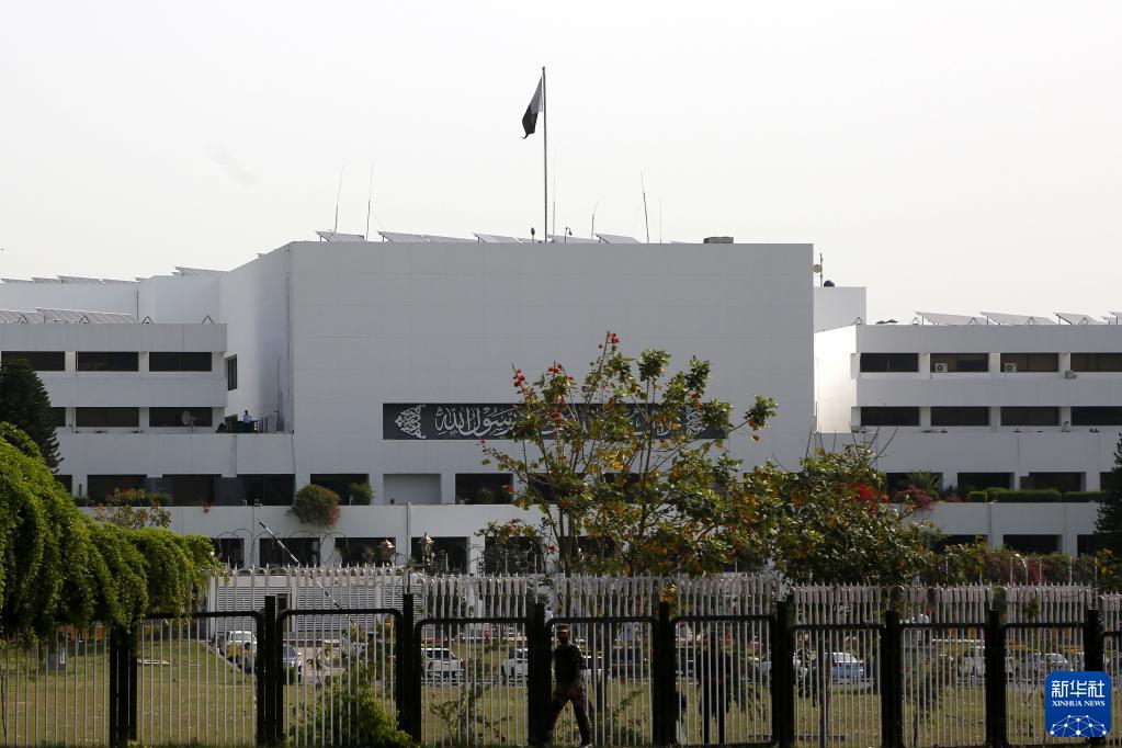 这是4月3日在巴基斯坦首都伊斯兰堡拍摄的国民议会大楼。巴基斯坦总统秘书处3日说,总统阿尔维当天批准总理伊姆兰·汗的建议,宣布解散国民议会(议会下院)。新华社发(艾哈迈德·卡迈勒摄)