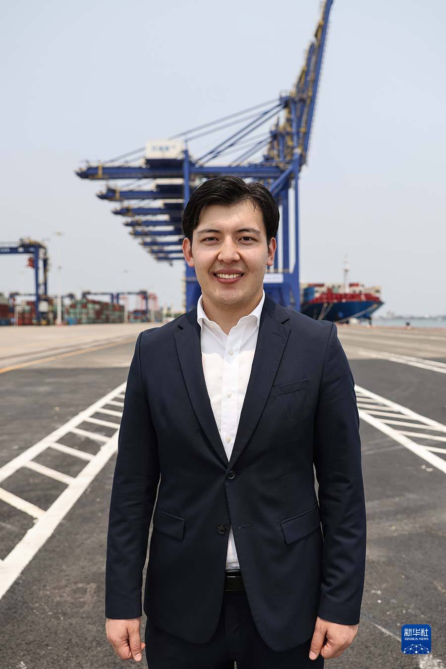 4月12日,哈萨克斯坦小伙儿鲁斯兰在洋浦港见到了前来考察的习近平主席。