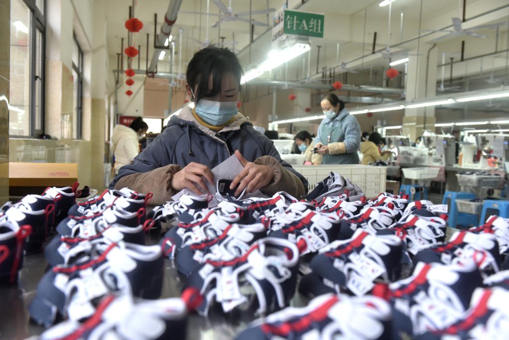 2月21日,在四川省内江市曙光社区一“社区微工厂”,工人在针车线上忙碌。新华社发(黄正华摄)