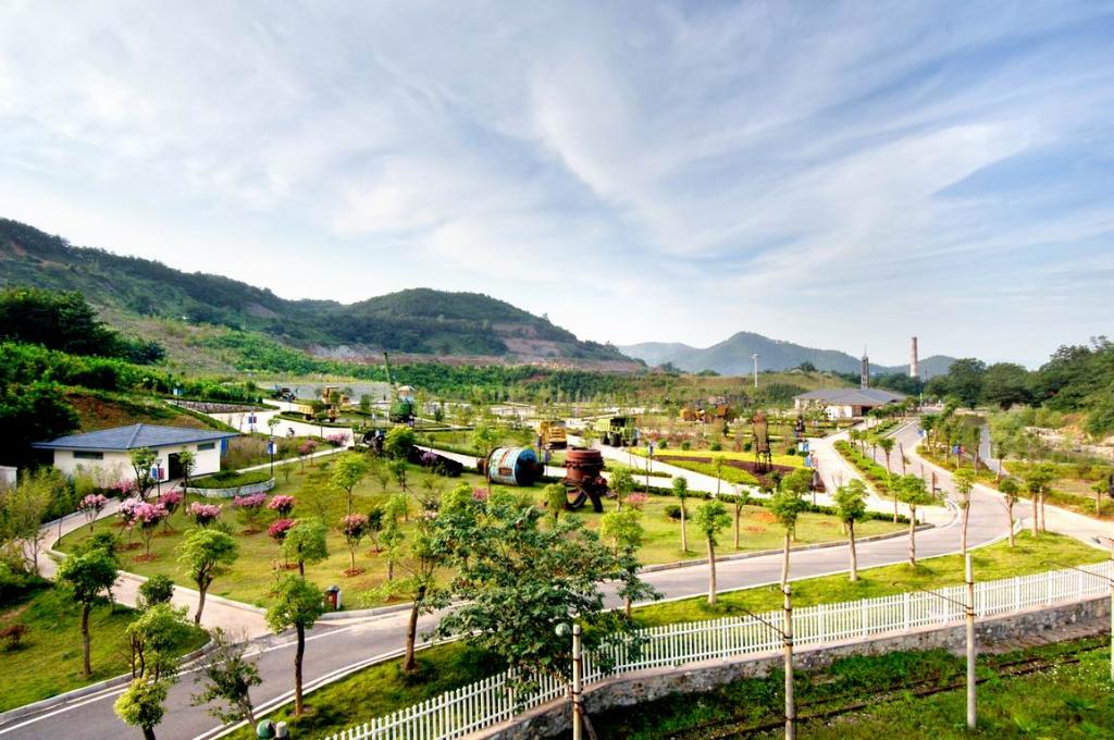 极目远眺,满眼的绿,废石堆上种出的连片槐花林郁郁葱葱;迷人的棕,修旧如旧的采矿设施陈列在园区里的矿冶博览园;彩虹色的滑梯、“1890矿乐谷”等旅游项目点缀其间。