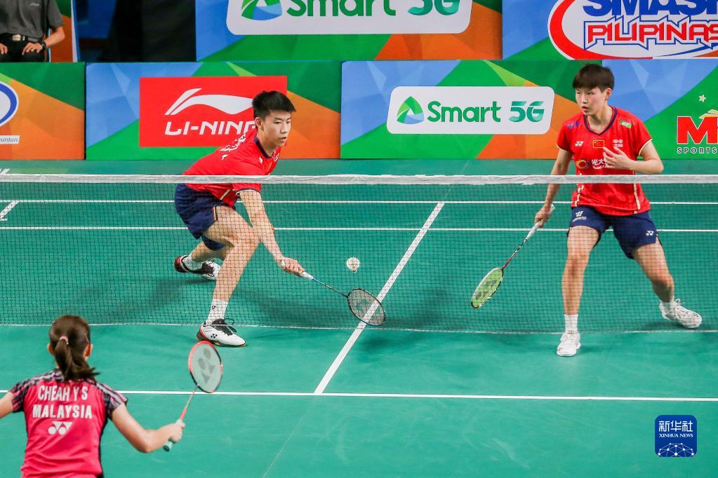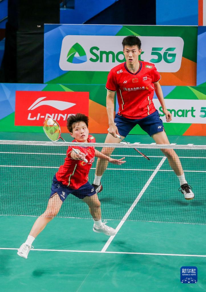 4月26日,冯彦哲(右)/林芳灵在比赛中。新华社发(乌马利摄)