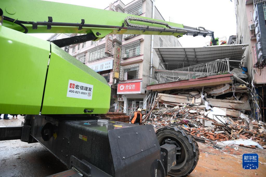 4月30日,工作人员在湖南长沙居民自建房倒塌事故救援现场作业。新华社记者 申宏 摄