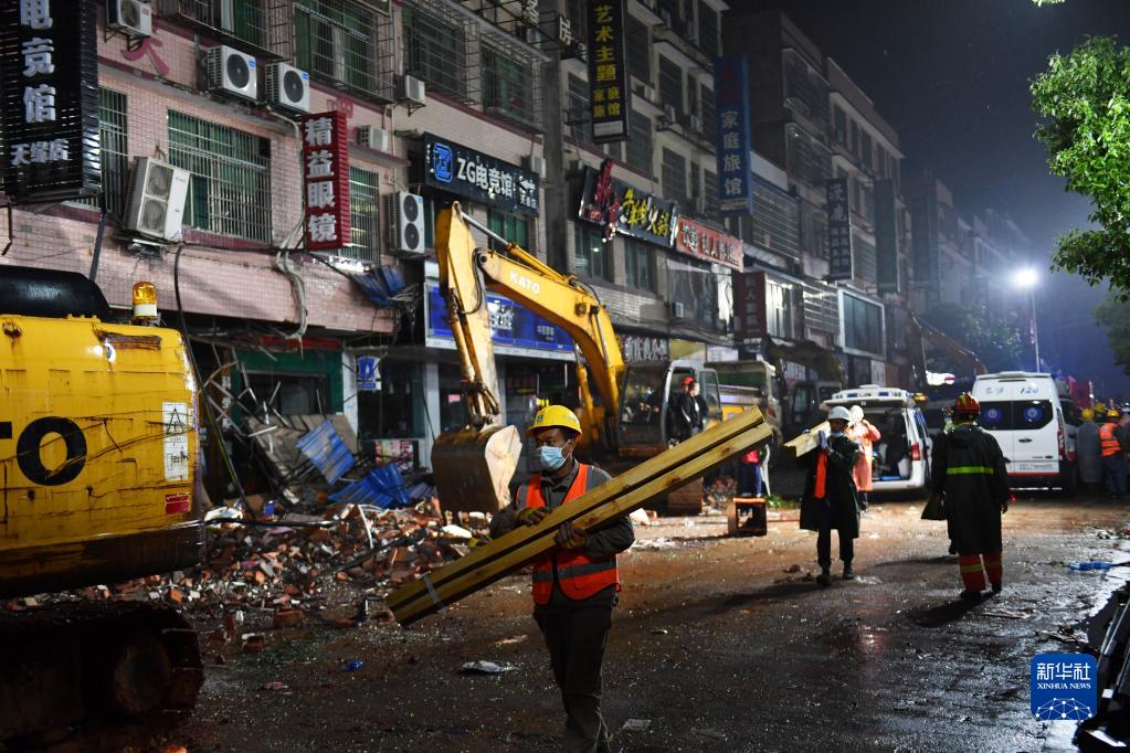 事故发生后,湖南迅速启动应急预案,迅速成立现场调度处置指挥部,全力开展现场救援,紧急出动消防救援人员、武警官兵和社会应急力量700余人,调集消防车、大型吊车、发电车、生命探测仪等各类救援设备120余台套和搜救犬,开展现场搜救。