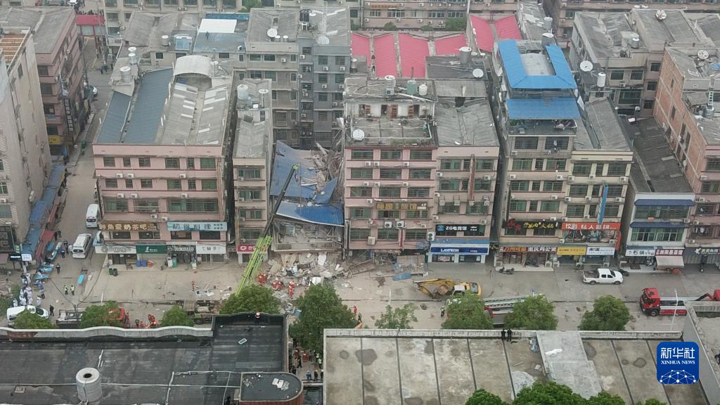 4月30日,救援人员在湖南长沙居民自建房倒塌事故现场进行救援。新华社记者 陈振海 摄