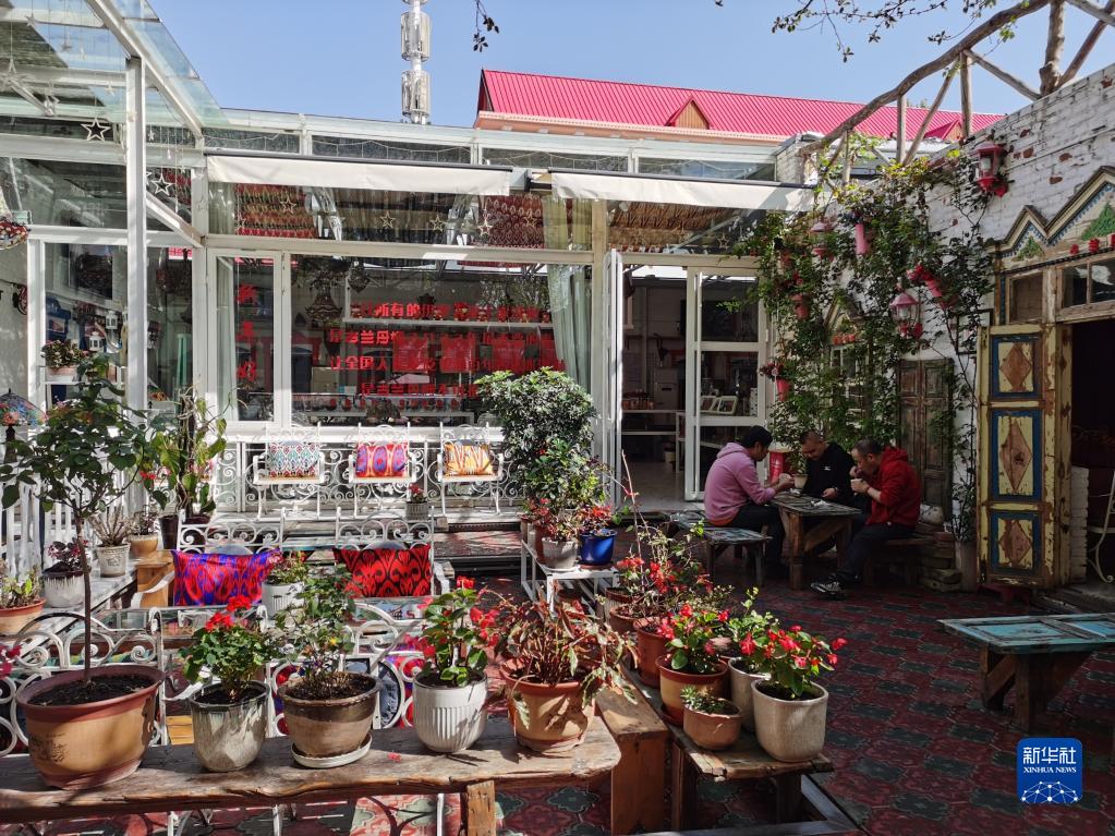这是位于伊宁市六星街景区的古兰丹姆百年手工冰激凌店一角(4月14日摄)。新华社发(王志华 摄)
