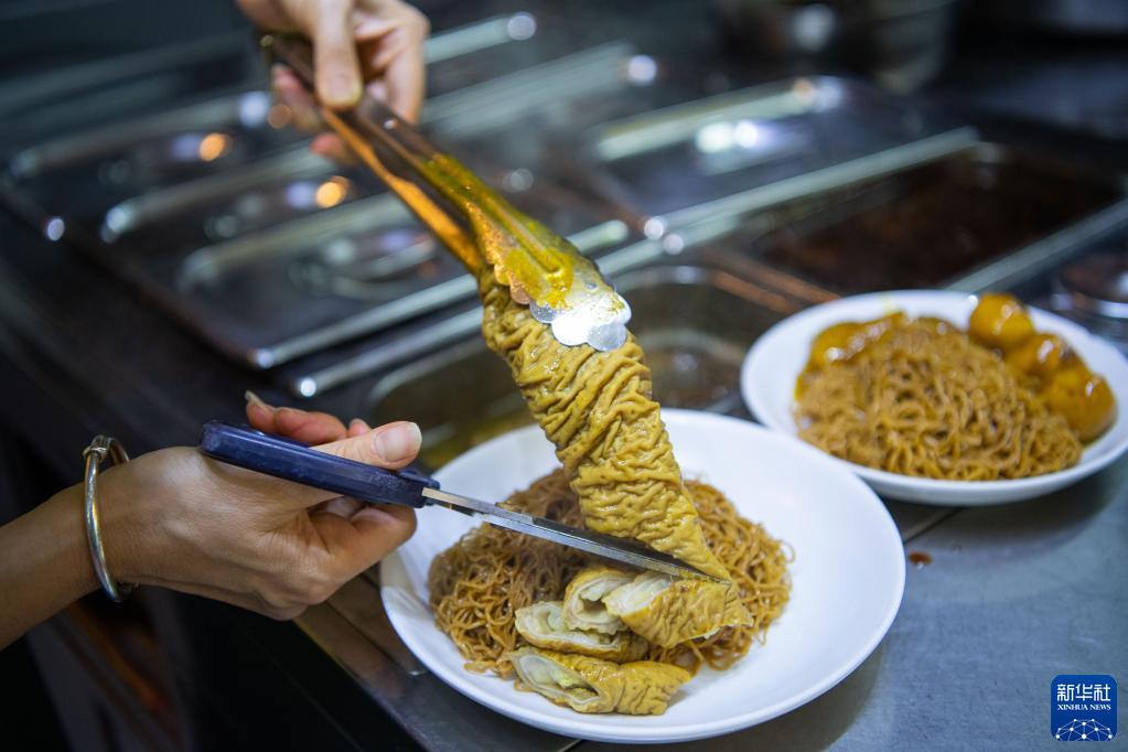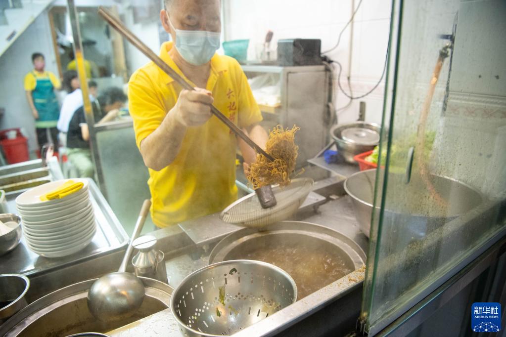4月28日,“六记粥面”的师傅制作大肠面。新华社记者 张金加 摄