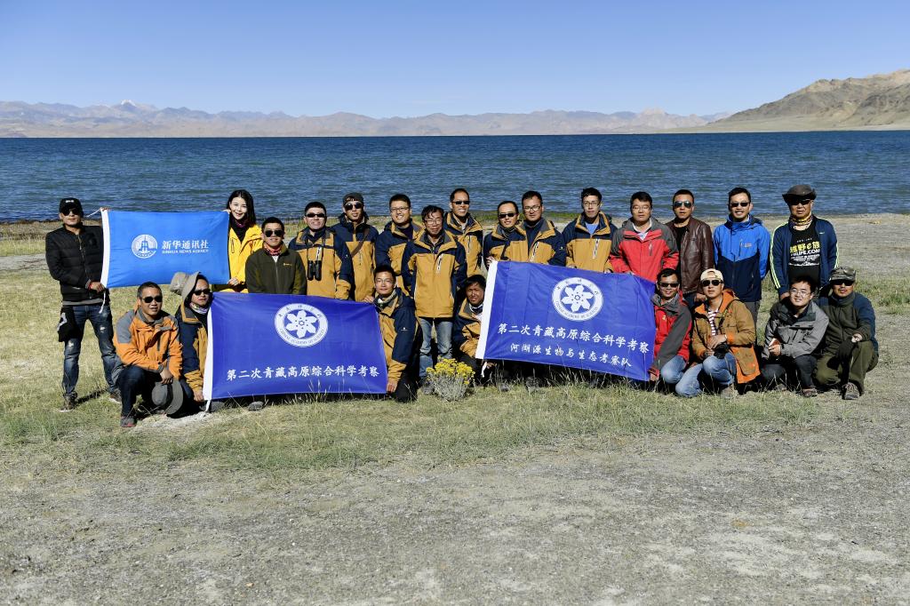 2018年8月,记者在西藏阿里与青藏科考队员合影。