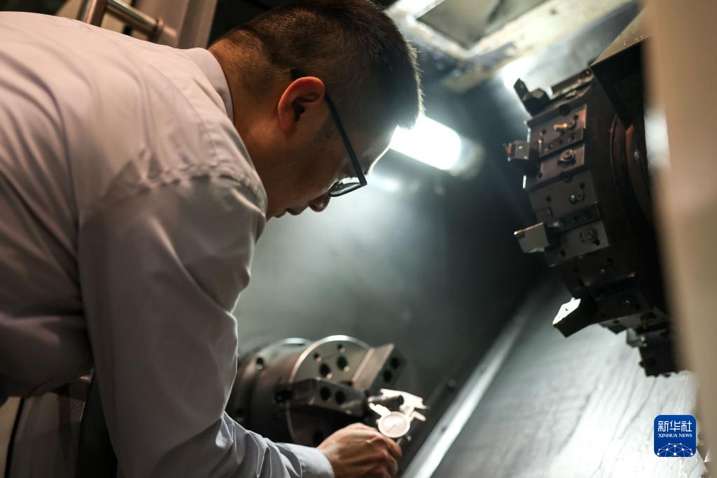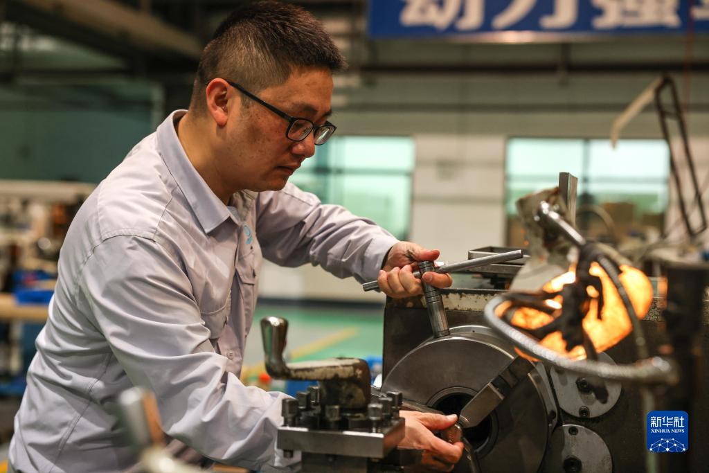 4月28日,孙刚操作数控车床加工零件。新华社记者 欧东衢 摄