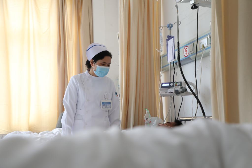 图为5月8日拍摄的脱亚莉为患者输液场景。新华社记者张睿摄