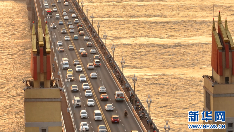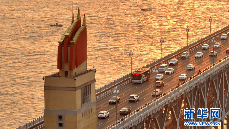 暖黄色的日光似金箔一般洒向江面 新华网发