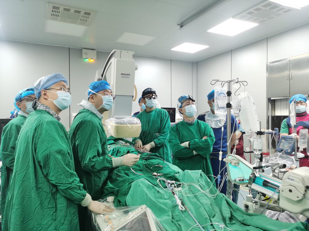 唐熠达教授及团队为一例高危复杂主动脉瓣重度狭窄患者行TAVR手术。(受访者供图)