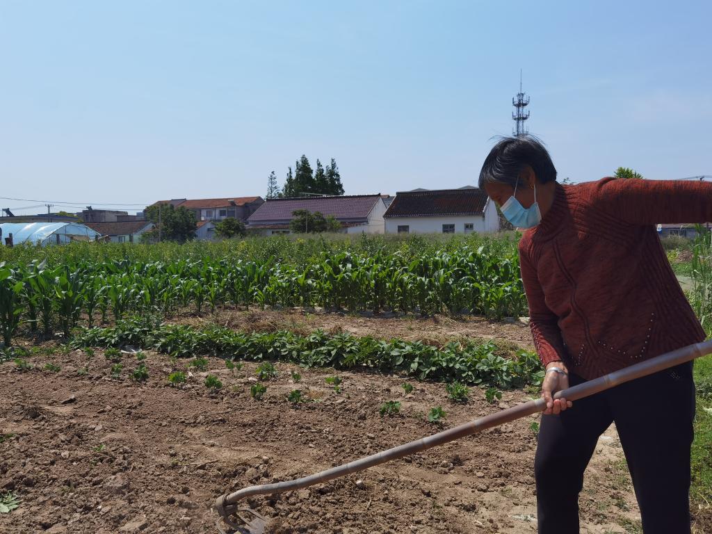 5月18日,陈玉兰在打理自家菜地。新华社记者朱旭东摄