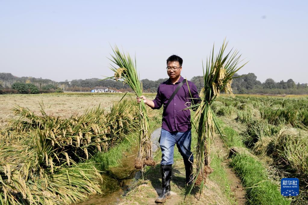 湖南杂交水稻研究中心栽培室主任李建武在试验田工作(资料照片)。新华社发(受访者供图)