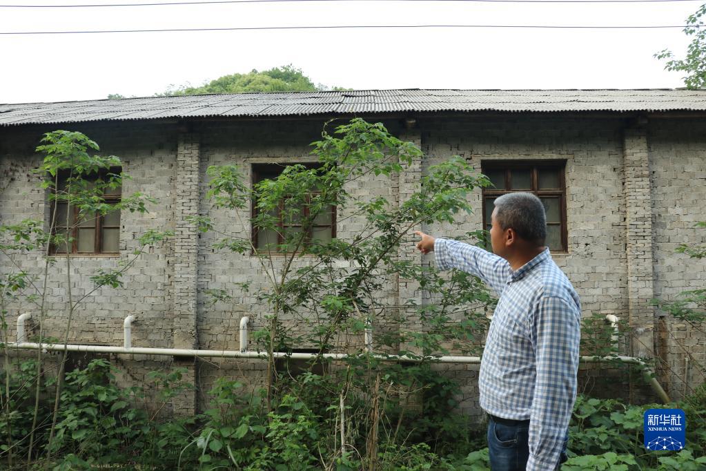 欧阳鹏在介绍一处即将被拆除的猪舍(4月24日摄)。新华社记者 丁春雨 摄