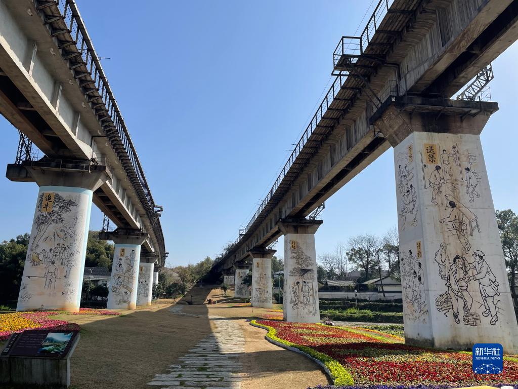 这是湖南省益阳市谢林港镇清溪村高架桥下的山乡巨变主题绘画(3月8摄)。新华社记者 张格 摄