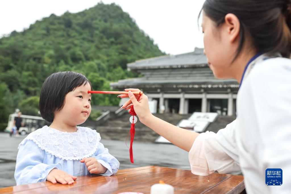 6月3日,在贵州省贵阳孔学堂举行的端午活动上,工作人员为小朋友“朱砂开智”。