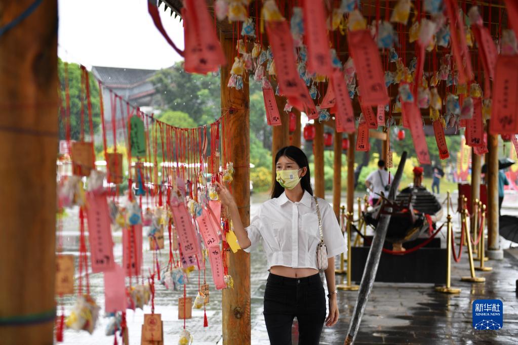 6月3日,游客在湖南省汨罗市屈子文化园游玩。